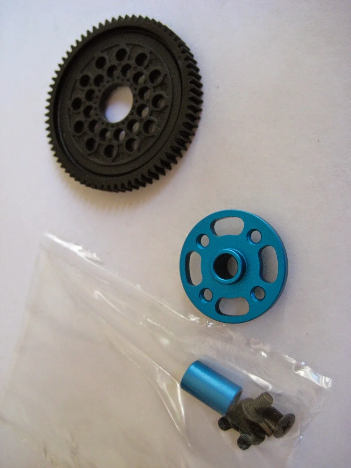 Installa il Set ingranaggi ad alta velocità Tamiya (54500), che include un supporto che ti permette di montare le classiche corone a 4 fori con il passo (pitch) che preferisci
