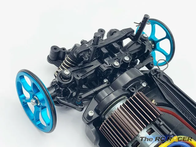 Convergenza Posteriore (Toe-in): Sostituire i mozzi posteriori con quelli in alluminio (es. Tamiya 54549) per ottenere 2.5 gradi di toe-in cambierà radicalmente in meglio la stabilità dell'auto sui rettilinei e in inserimento di curva
