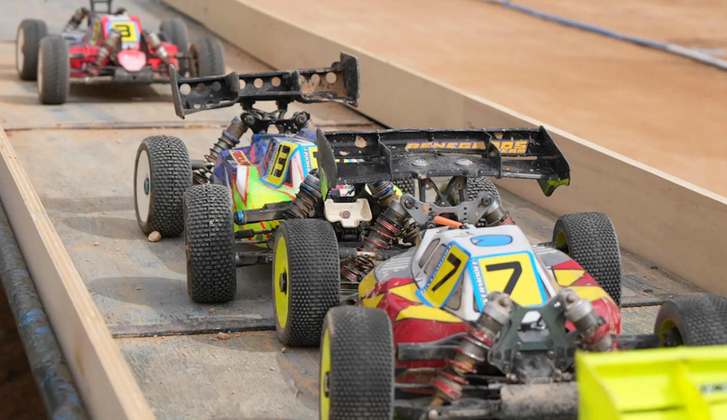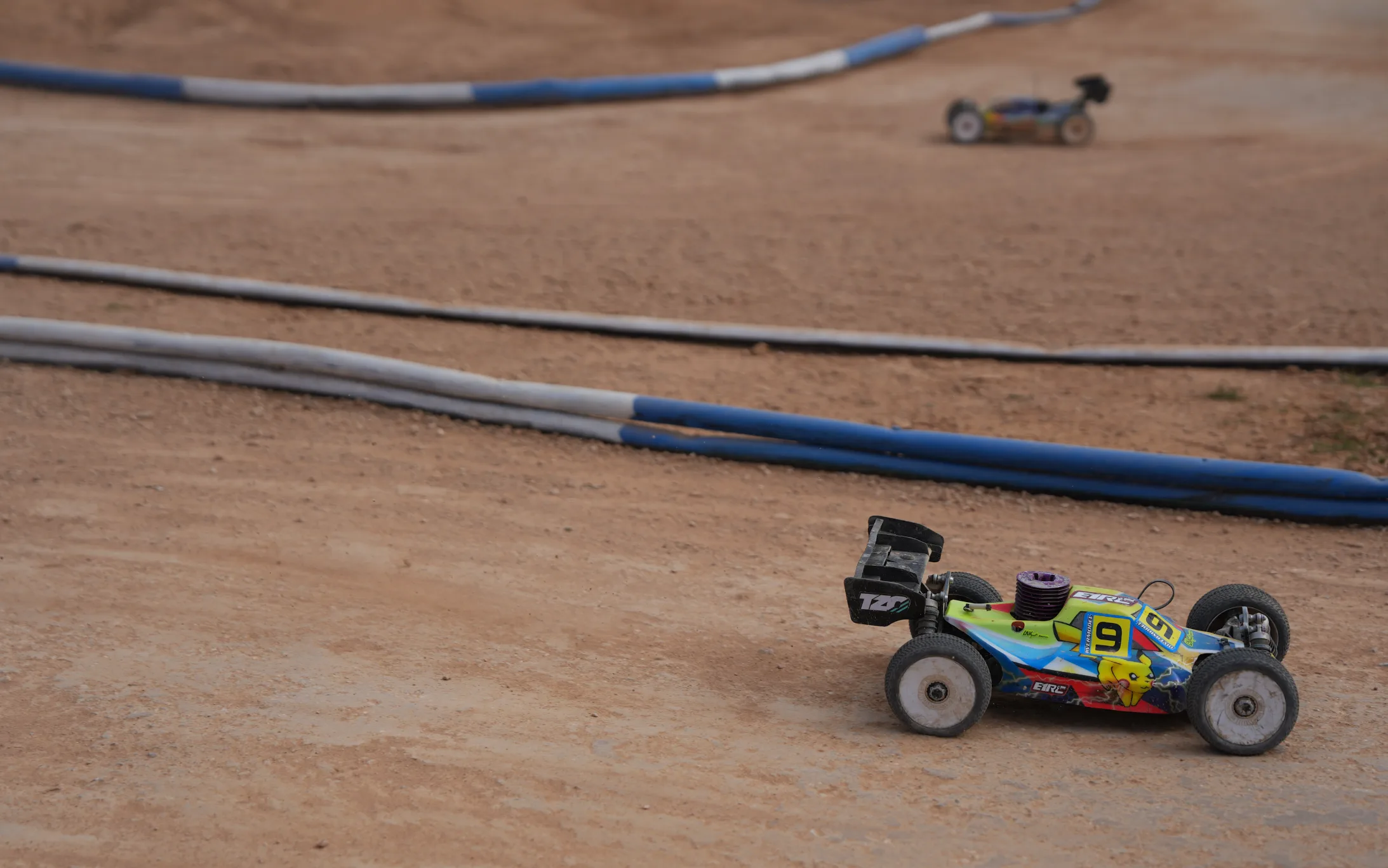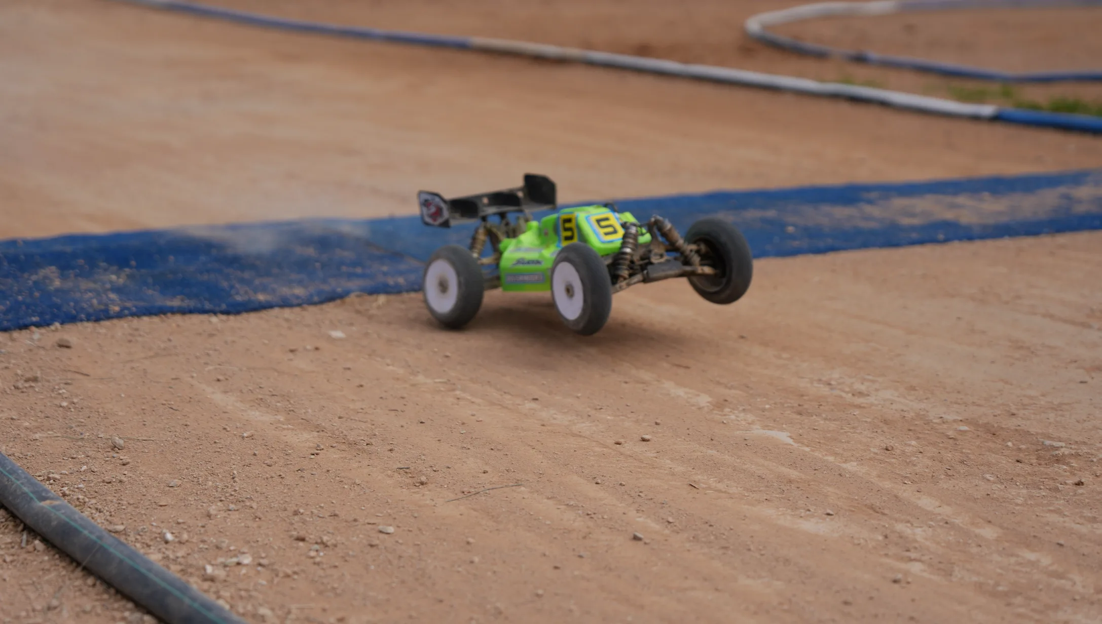 El circuito presenta un diseño moderno y técnico, caracterizado por un suelo de tierra compacta y un trazado diseñado para ofrecer una conducción dinámica y desafiante. Las curvas técnicas se alternan con rectas rápidas y secciones de saltos, creando un recorrido capaz de poner a prueba tanto la precisión de conducción como la velocidad de los modelos.